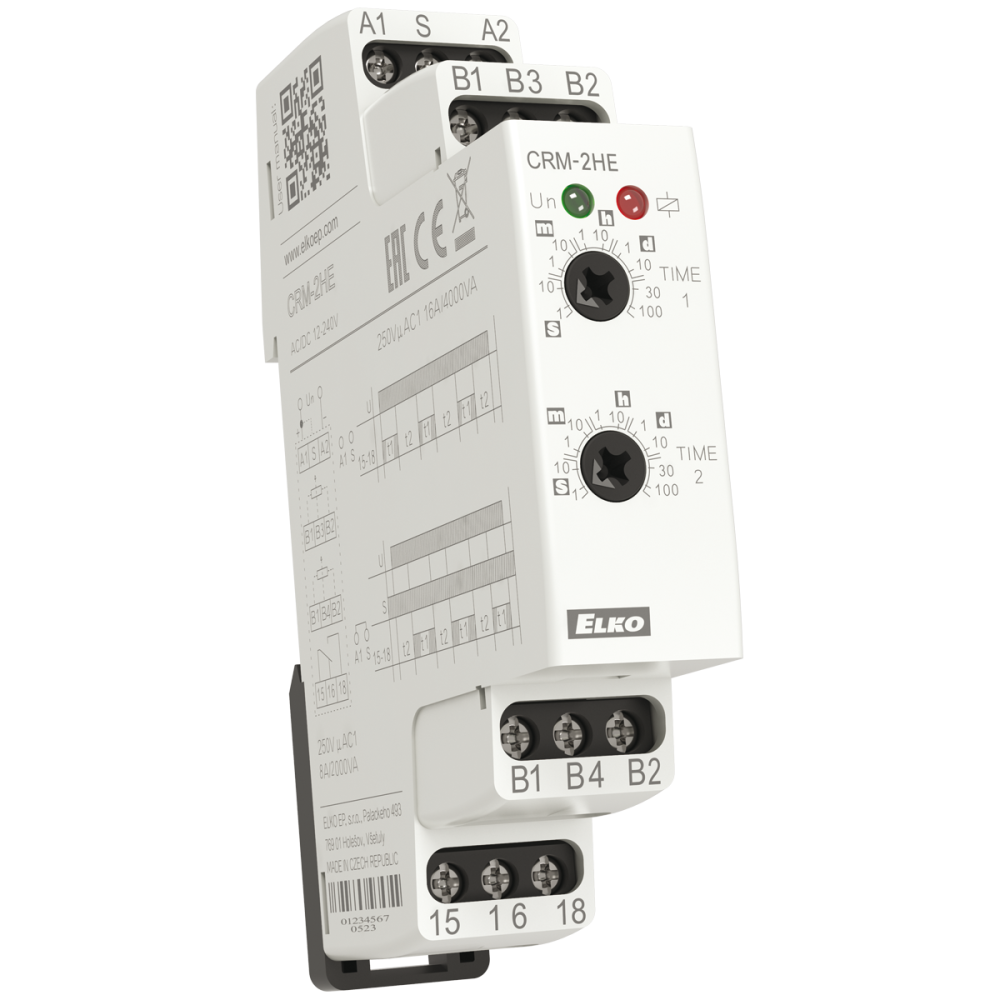 - Časové relé s možnosťou ovládania času externým ovládacím prvkom - potenciometrom, ktorý je možné umiestniť napr. do dvierok rozvádzača, panelu.