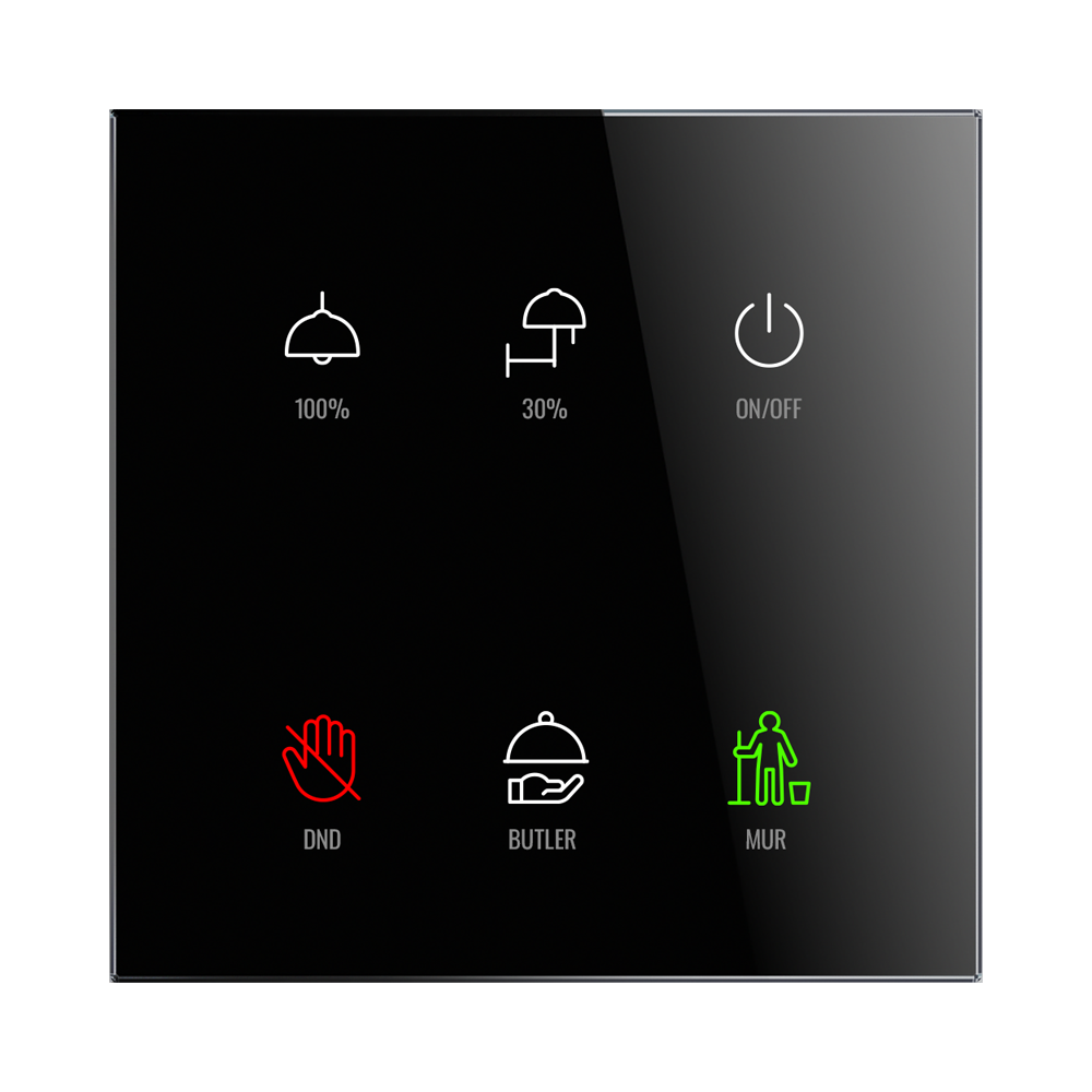- Štandardná farba skla biela/čierna, tlačidlá a popisy v hornej časti - prípadne logo hotela pri objednaní