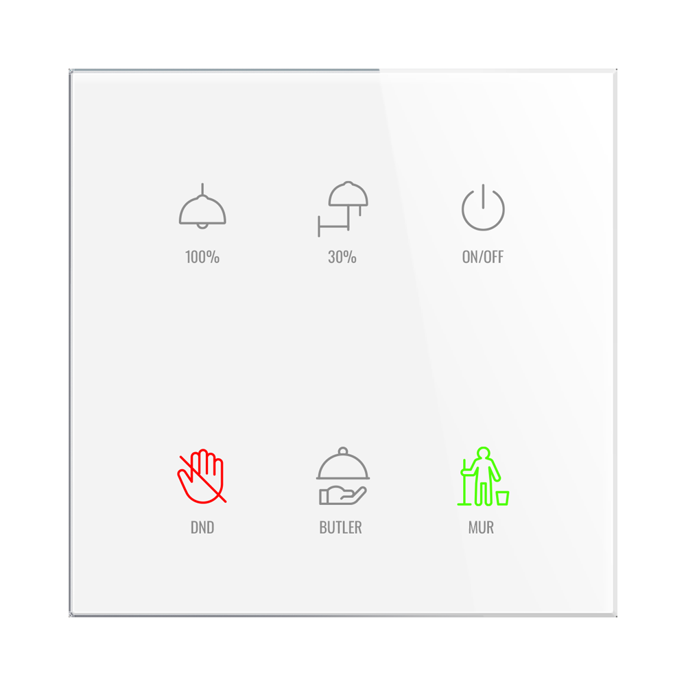 - Štandardná farba skla biela/čierna, tlačidlá a popisy v hornej časti - prípadne logo hotela pri objednaní