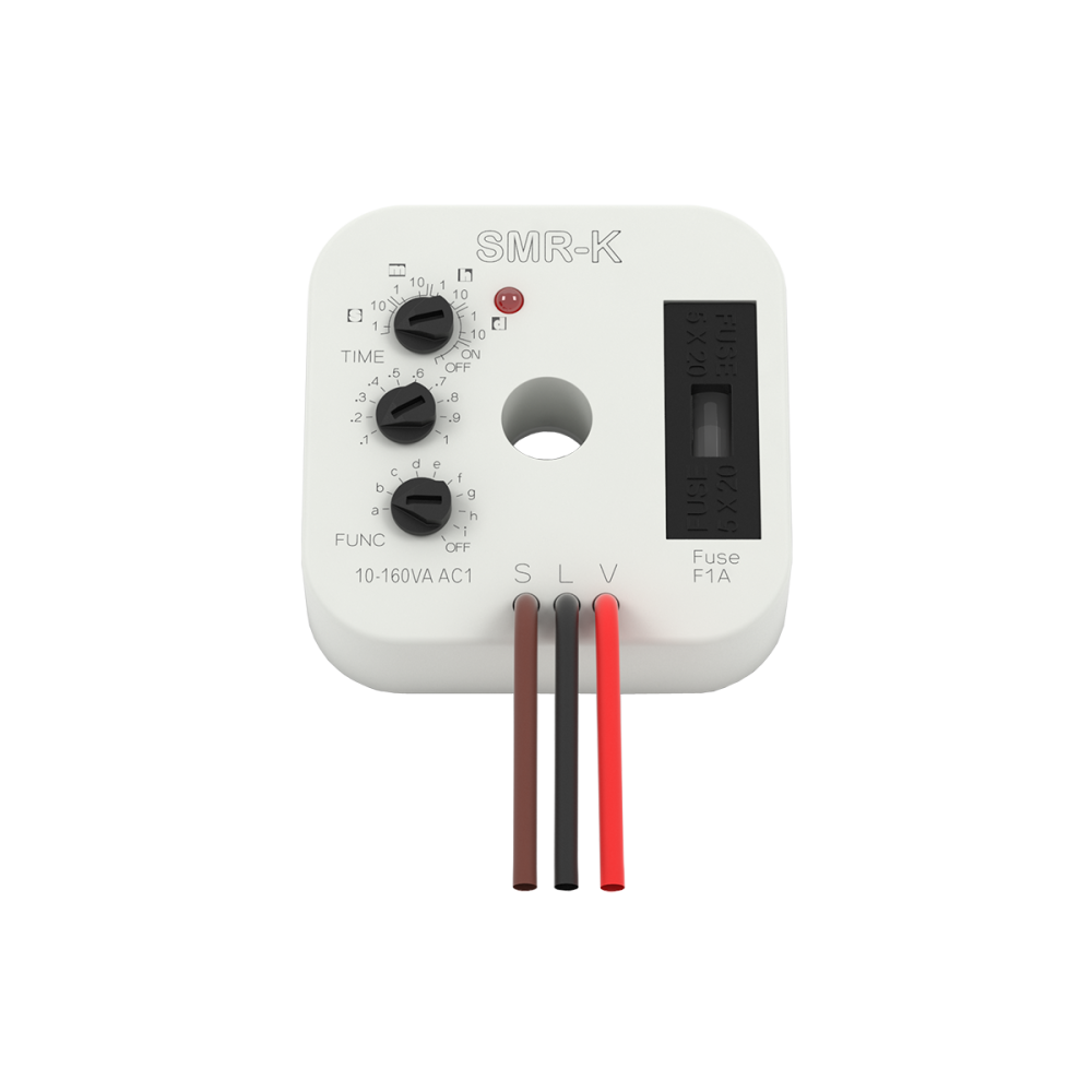 - Multifunkčné relé určené pre montáž do inštalačnej krabice, pod tlačidlo alebo vypínač do existujúcej elektroinštalácie (SMR-K, SMR-T nepotrebuje k svojej funkcii nulový vodič).