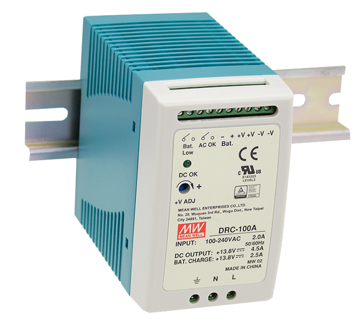 Impulzný zálohovaný napájací zdroj MEAN WELL na DIN lištu vhodný pre zabezpečovacie systémy