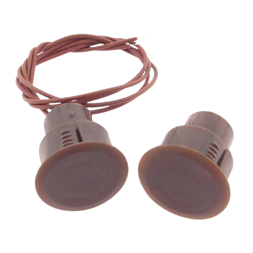- Magnetický snímač (kontakt) valcového tvaru určený na zapustenie napr. do rámu dverí. Vodotesný.