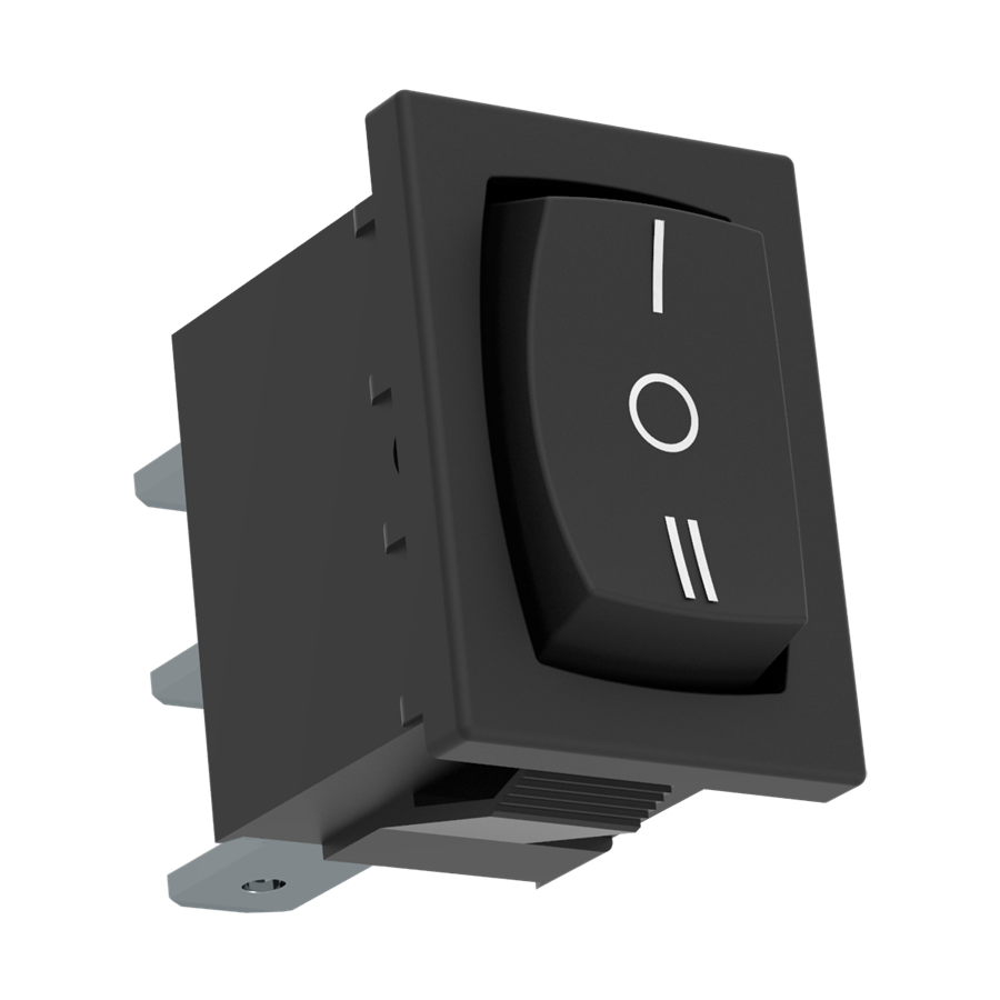 - Prepínač s nulovou polohou uprostred s potlačou I/0/II