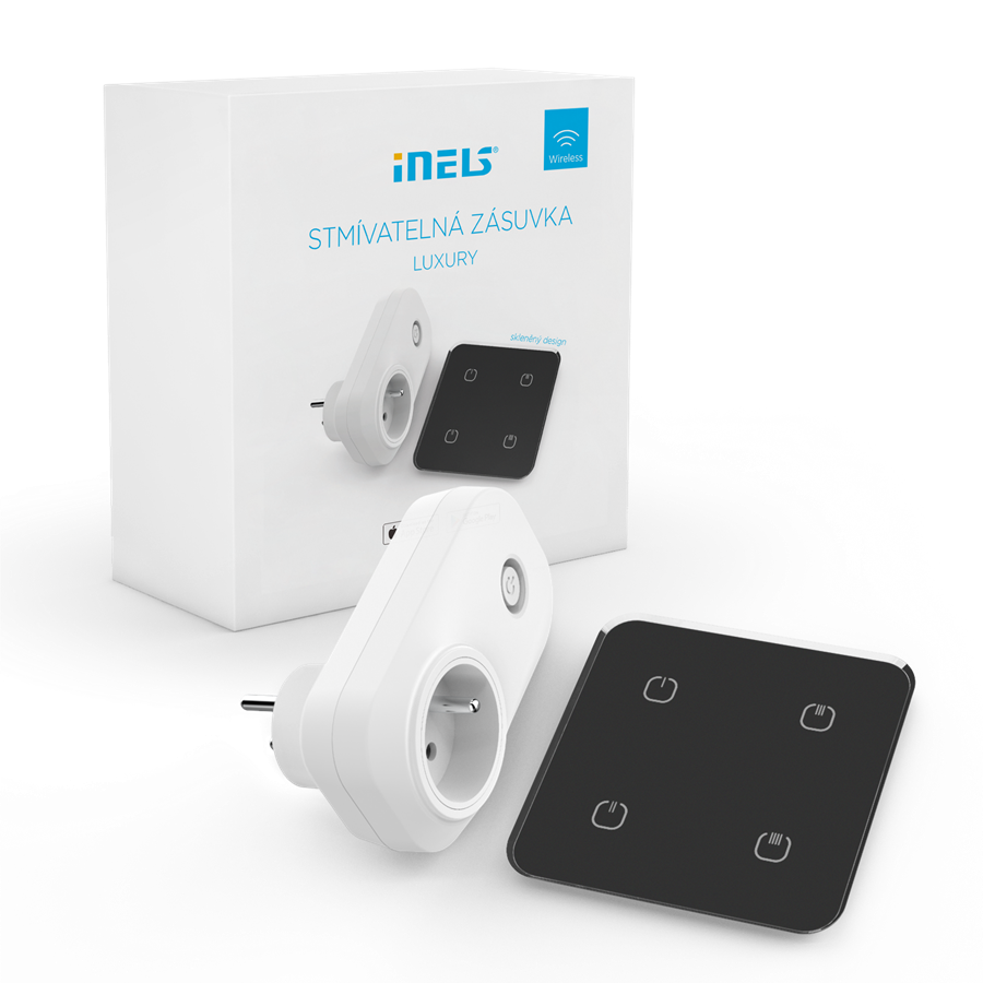 Kombinácia iNELS nástenného bezdrôtového ovládača a stmievateľnej zásuvky pre reguláciu jasu všetkých typov stmievaných lámp a svietidiel.