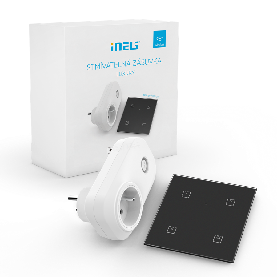 Kombinácia iNELS nástenného bezdrôtového ovládača a stmievateľnej zásuvky pre reguláciu jasu všetkých typov stmievaných lámp a svietidiel.