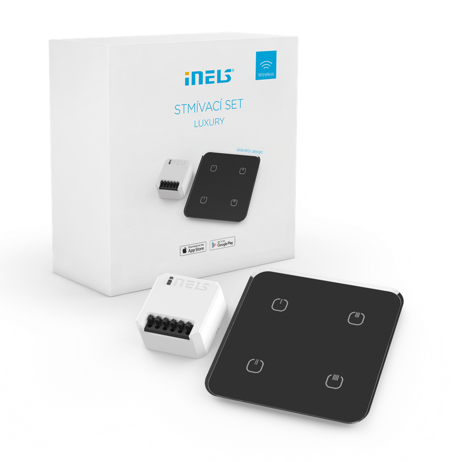 Kombinácia iNELS nástenného bezdrôtového ovládača a stmievacieho prvku pre reguláciu jasu všetkých typov stmievaných lámp a svietidiel.