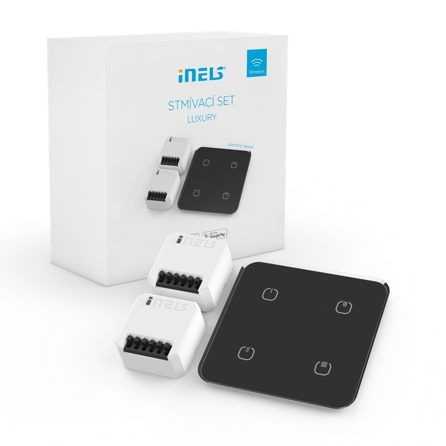 Kombinácia iNELS nástenného bezdrôtového ovládača a stmievacieho prvku pre reguláciu jasu všetkých typov stmievaných lámp a svietidiel.