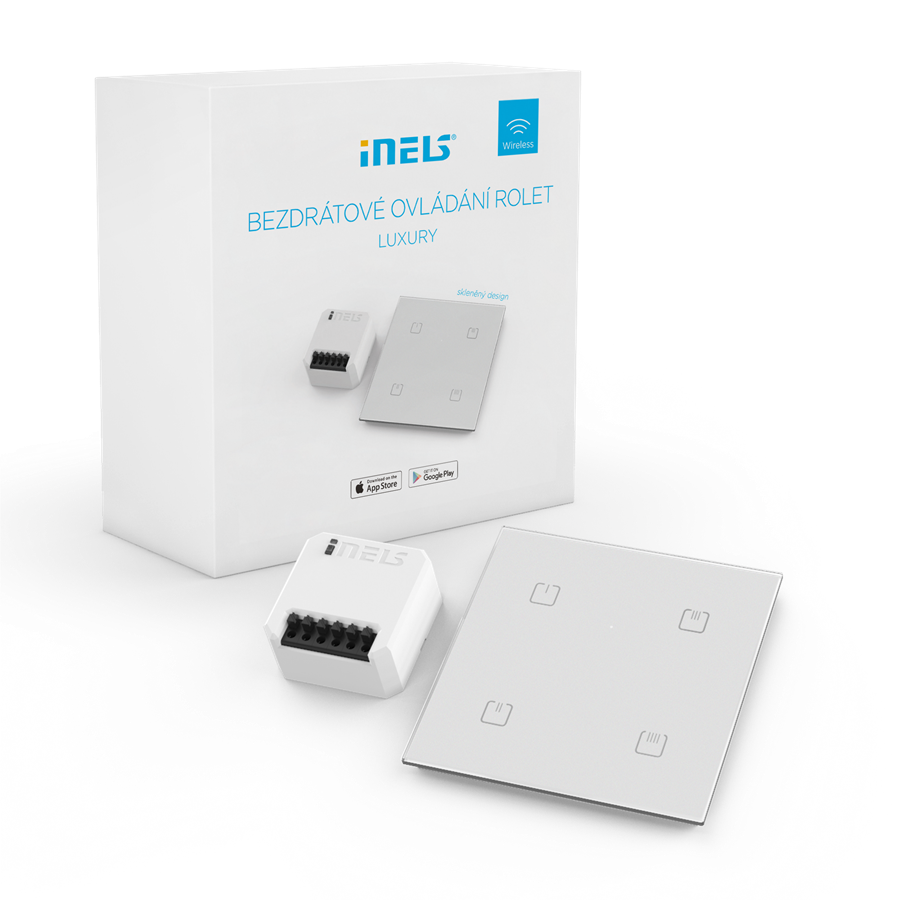 Kombinácia iNELS nástenného bezdrôtového ovládača a spínacieho prvku na ovládanie žalúzií.