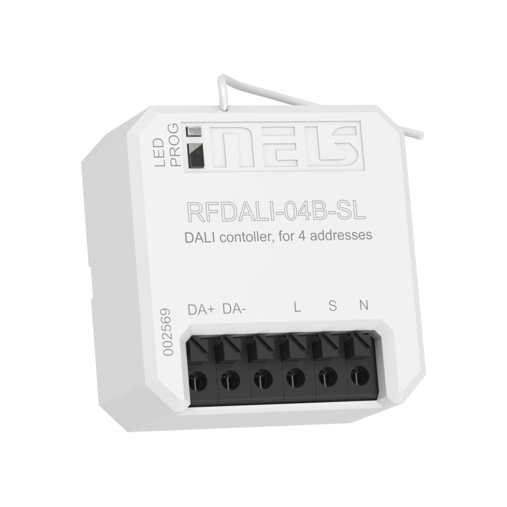 - Riadiaci prvok RFDALI-04B-SL je určený na riadenie prístrojov s DALI rozhraním ako sú stmievače, elektronické predradníky, meniče pre LED a ďalšie.