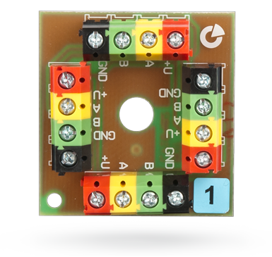 Rozbočovač JA-110Z-C je určený na spájanie vodičov zbernice v systéme JA-100. Vďaka svojim rozmerom ho možno inštalovať do viacúčelovej krabice JA-190PL alebo do podomietkovej elektroništalačnej krabice.