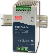 MW - Zdroje na DIN li?tu - , SDR-240-24 zdroj DIN, 88÷264V AC, 124÷370V DC, 24V 0÷10A - Impulzný napájací zdroj MEAN WELL na DIN li?tu s vysokou účinnos?ou a malými rozmermi