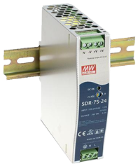MW - Zdroje na DIN li?tu - , SDR-75-24 zdroj DIN, 88÷264V AC, 124÷370V DC, 24V 0÷3.2A - Impulzný napájací zdroj MEAN WELL na DIN li?tu s vysokou účinnos?ou a malými rozmermi.