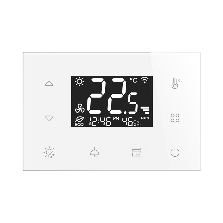 - Sklenený dotykový batériou napájaný termostat RFTC-4/W, biely (voliteľné ikony)