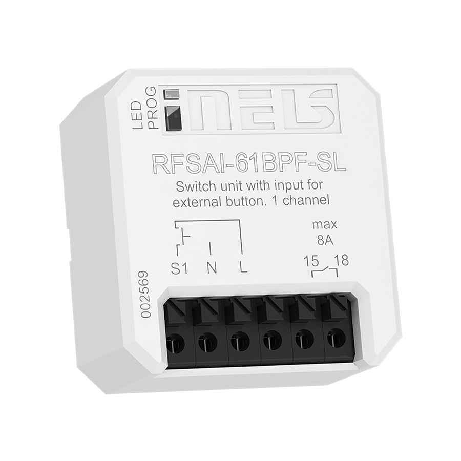 - Spínací prvok RFSAI-61BPF-SL so vstupmi pre ext. tlačidlá (Bezpotenciálny kontakt)