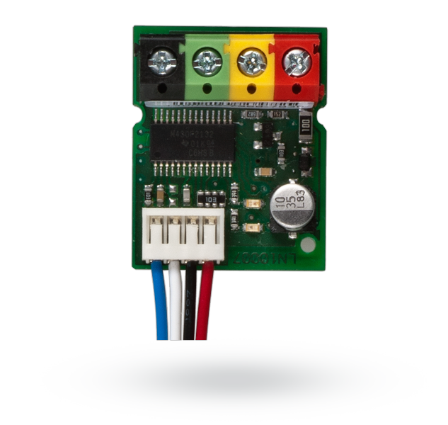Inštaluje sa do externého ovládacieho zariadenia (s kontaktnými alebo impulznými výstupmi)a umožňuje mu komunikáciu po zbernici systému. Poskytuje pre neho aj napájanie 12 V.